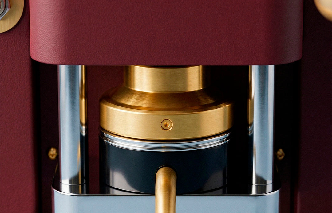 Pressacialda in ottone regolabile. Migliora la compattezza della cialda e la resa in tazza. La base estraibile facilita manutenzione ed igiene.